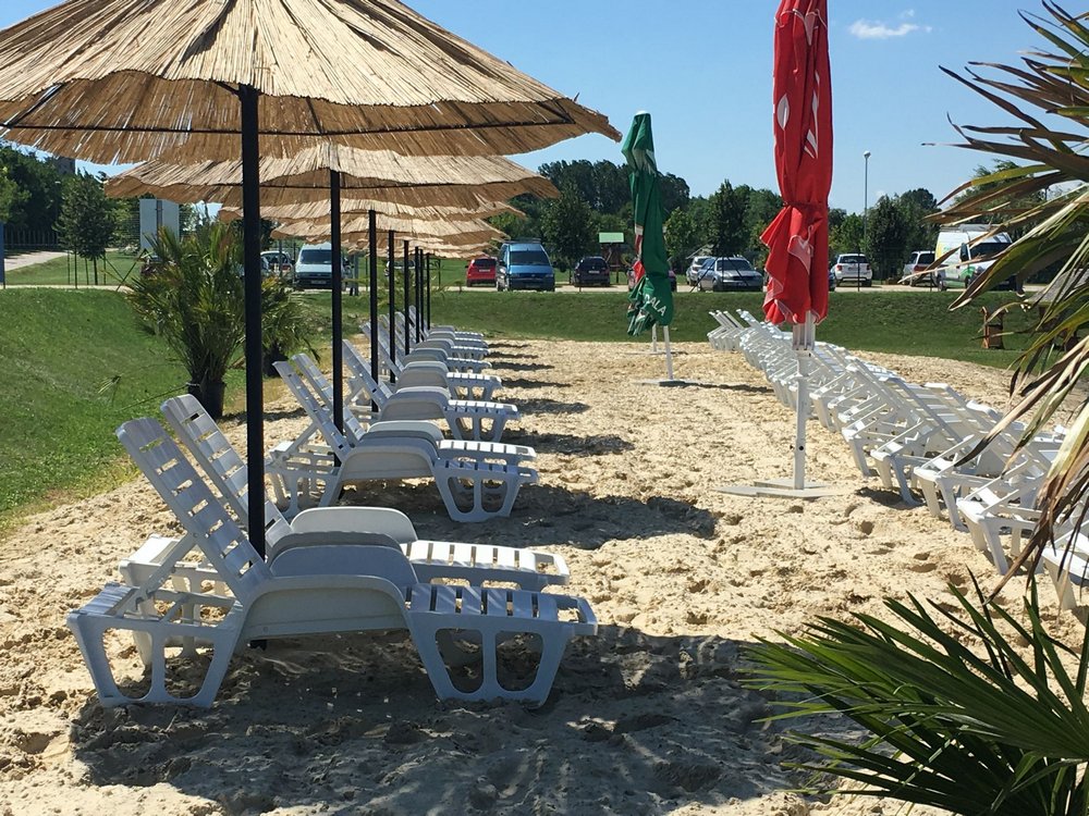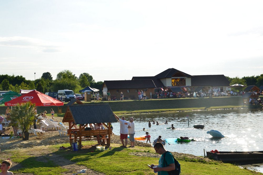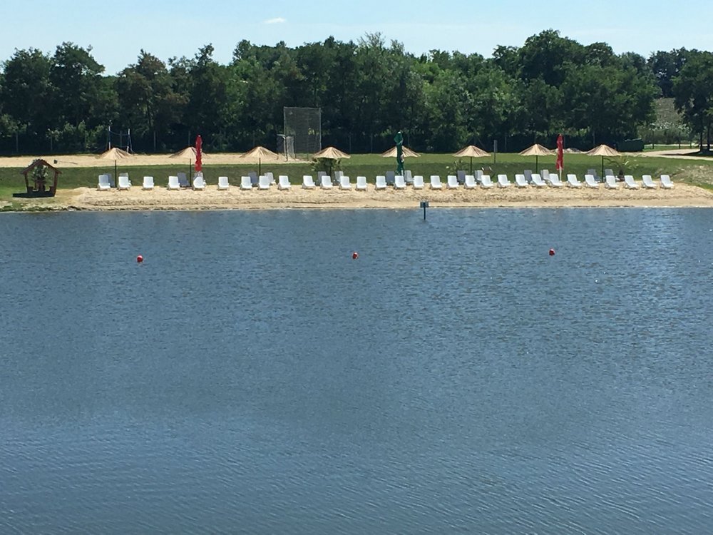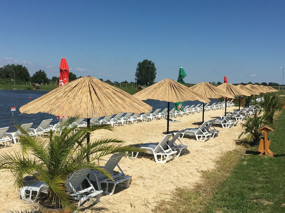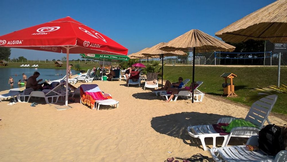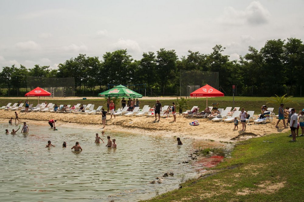 Ellenőrzött vízminőségű strandrész lassan mélyülő parttal.